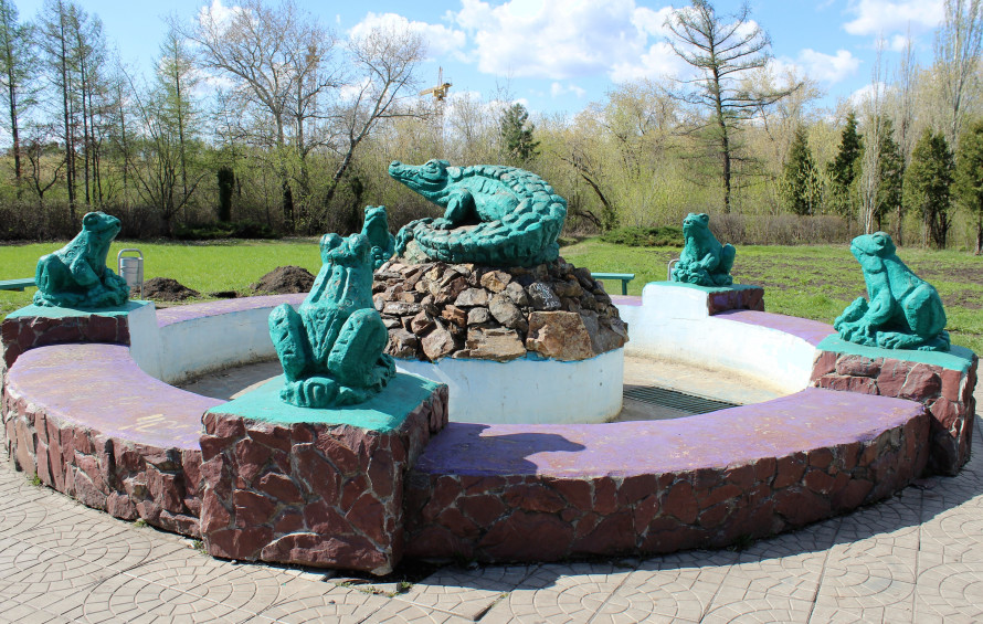 Один из старейших фонтанов Омска, сохранившихся до наших дней, был установлен в 1937 году на территории ОмГАУ, напротив главного корпуса. Фонтан представляет собой композицию: по краям фонтана установлены 6 лягушек, а в центре находится крокодил. В народе его называют «Крокодил и лягушки» или сокращенно «Лягушки». В середине 50-х гг. фонтан перестал работать. В 1988 году его восстановили. С 1990-х гг. перестал работать. В настоящее время включается эпизодически. Время включения следует уточнять у администрации университета.